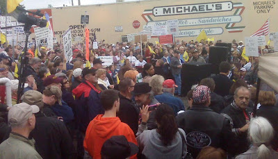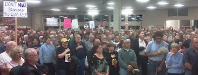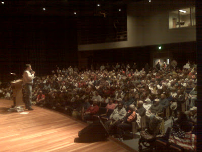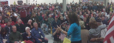 But we had nothing to worry about. The momentum continues to build for this effort as we cross the country and word spreads of the Tea Party Express II: Countdown to Judgment Day tour. We walked into the local high school auditorium and saw this - a room so filled that not everyone fit in the room!