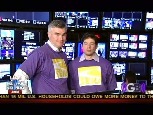 It’s been posted many times today. It looks like he’s wearing an SEIU shirt under his suit coat.