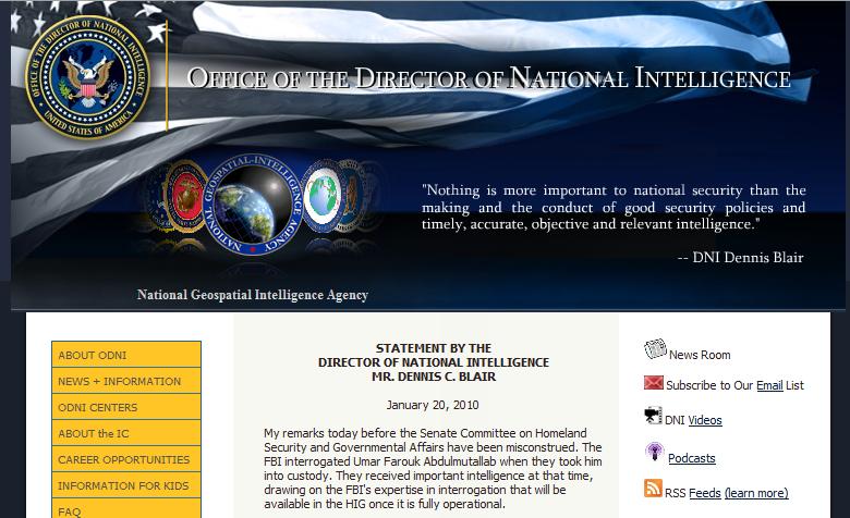 Director of National Intelligence Dennis Blair literally slapped himself in the forehead yesterday while testifying "Duh! We never thought of that." Meaning, the current National Security Council never thought they needed to establish a protocol and disseminate guidance to federal law enforcement agents. Blair further testified that the "High Value Interrogation Group" (HIG) ... was created exactly for this purpose -- to make a decision on whether a certain person who's detained should be treated as a case for federal prosecution or for some of the other means." Only, he later wrote on the DNI's web site that, "the FBI's expertise in interrogation that will be available in the HIG once it is fully operational." (See image below.)