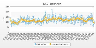 ISEE option sentiment, which is a call-put ratio, is showing that market players have suddenly tilted to a bearish extreme, which is also contrarian bullish.