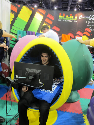 As we continue to scout the CES 2011 showroom floor, we came across an eye-catching furniture concept, the Sound Egg. The Sound Egg is fully customizable surround sound chair and comes in many configurations with some sporting connected HD TVs and both HDMI and RCA-out connectivity.