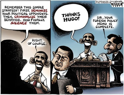 In their game of “Who can Create the Fastest Slave State," Venezuelan Dictator (now official) Hugo Chavez is now ahead of US Dictator Barack Hussein Obama. Not long ago, Chavez made the comment “Hey, Obama has just nationalized nothing more and nothing less than General Motors. Comrade Obama! Fidel, careful or we are going to end up to his right.”