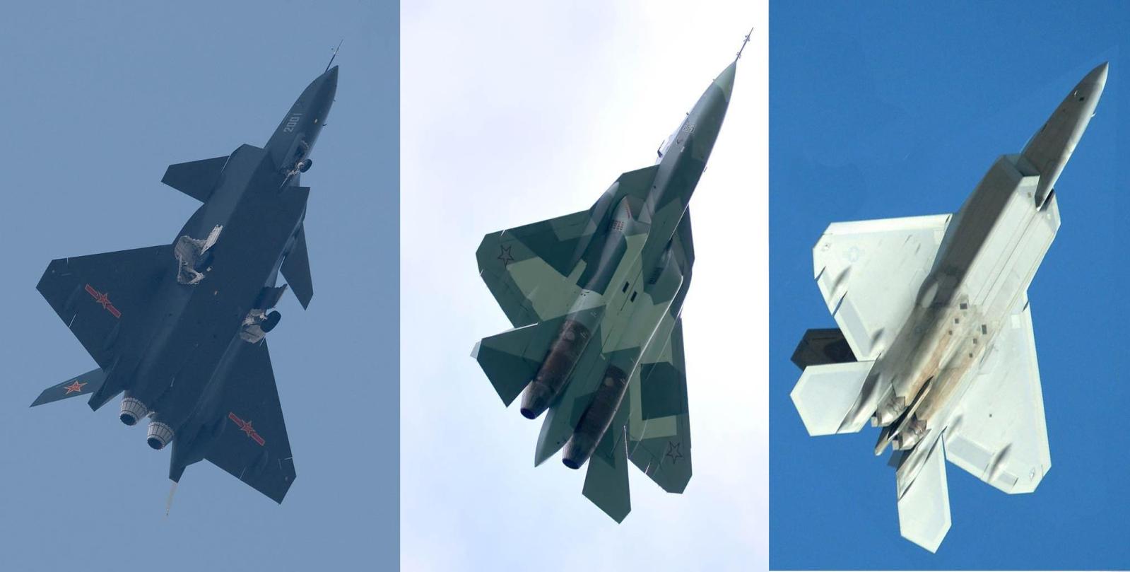 Left to Right-Chinese J-20, Russian PAK FA and US F-22
