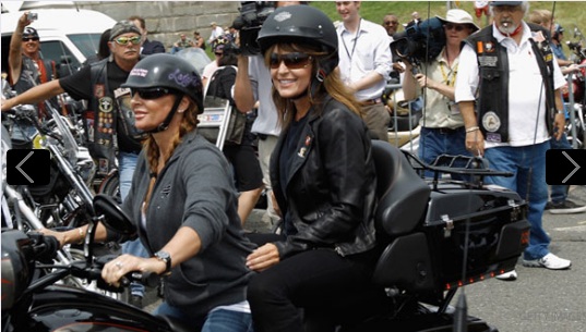 A San Diegan who is not Willow Palin and Governor Palin riding to the Vietnam Veterans Memorial during Rolling Thunder event in Washington DC, 2011.