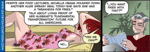 Propaganda for Moochelle Antoinette: “Let them eat arugula, while we feast on Wagu Beef, lobster, Iranian caviar, hamburgers, fries and shakes.” and Emperor King Obamessiah: “Let them eat peas.”