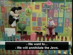 In Brilliant Children one episode showed a puppet of a Palestinian child stabbing a puppet of President George W. Bush in revenge for the deaths of his father in Iraq, his mother in Lebanon and his brothers and sisters by the Zionist criminals in the Gaza holocaust.