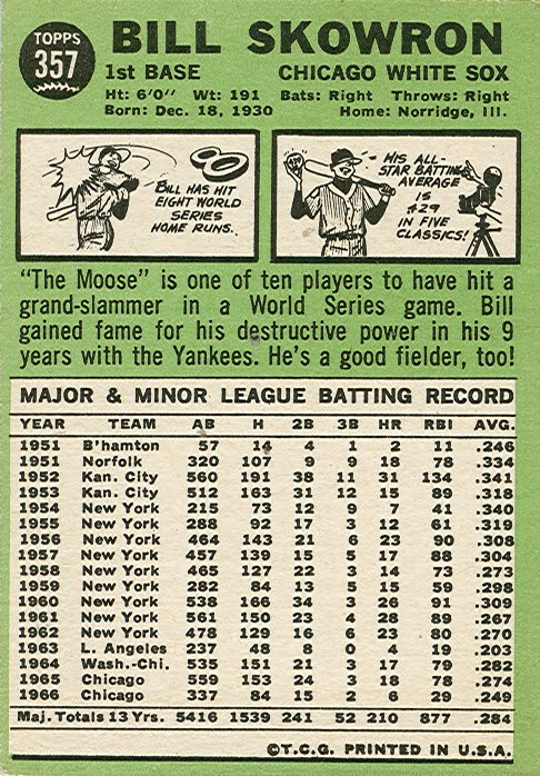 Skowron, a four-time All-Star, was the Yankees regular first baseman from 1955-62, averaging 21 homers and 75 RBI and finished his career with a .282 average, 211 homers and 888 RBI. He was especially lethal in the World Series in which he compiled a .293 average, eight homers and 29 RBI in 39 games over eight Fall Classics.