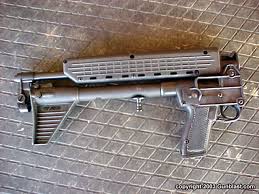 Get one in Glock 40 cal. It folds to sixteen inches and fits in a book bag or briefcase. Glock 32 round mags and 22 round mags fit nicely, even in the folded mode.