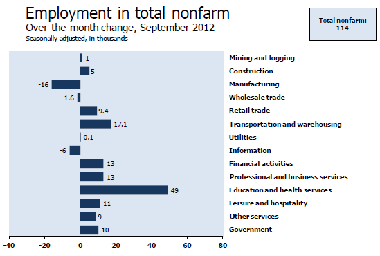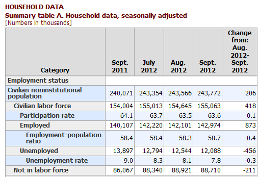 Please consider the Bureau of Labor Statistics (BLS) September 2012 Employment Report.