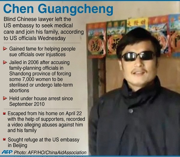 Since his escape, Chen has criticized Chinas human rights records, speaking about it before a U.S. congressional committee. He also has complained that Chinese authorities have reneged on assurances made to U.S. diplomats that his relatives would be treated according to the law.