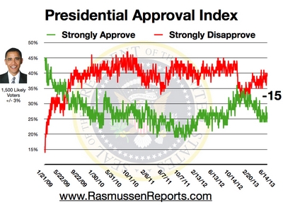 The Gallup Poll reported Thursday that Obama's job approval grade has fallen to an embarrassing 46 percent and that 47 percent of those polled disapprove of his second term performance, up by three points.