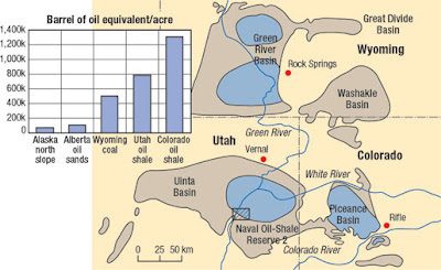 The Bush administration had set aside 1.3 million acres for oil shale and tar sands development in Colorado, Utah and Wyoming. The new Bureau of Land Management plan cuts that amount by two-thirds, down to 700,000 acres, a decision that has prompted industry outrage.