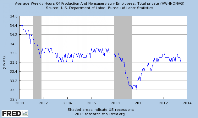 Inquiring minds are digging into average weekly hours of workers looking for Obamacare effects on which to place blame.