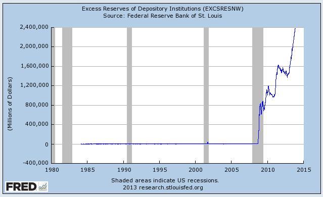 Printing money that just sits overnight at the Fed allowing banks to make risk-free profits on $2.4 trillion in excess reserves is of course ridiculous.