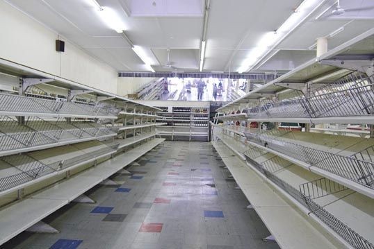 When we went inside the market, we were somewhat disappointed: there wasnt a single can of milk left on the shelves, even though purchases are restricted to one can per person.