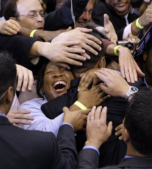 But not everyone was so impressed. At the 2:41 mark, you can see some disgruntled workers who are unable to get in their cars and drive home due to Obamas security entourage. And at 0:40 we see a couple that couldnt even be bothered to stand to greet the president.