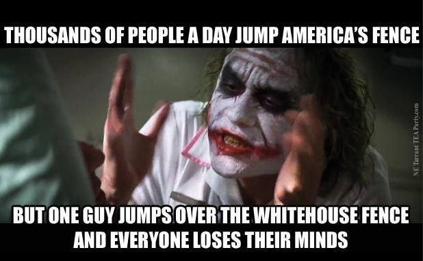 "Exactly, Obama wont leave the white house unlocked because it puts him in danger but hell leave the country unlocked cause he could care less what happens to us." Fences for me, but not for thee.