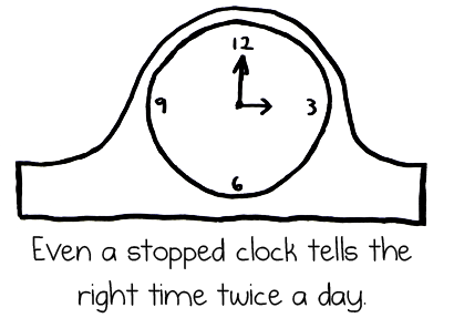 Maybe this is more a case of “a stopped clock is correct twice a day”.