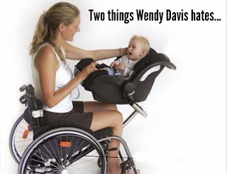 The week before, Davis ridiculed Abbott's physical disability with a vulgar TV ad featuring an empty wheelchair. Abbott was paralyzed in 1984 when a tree fell on top of him while he was jogging. In response to a bipartisan backlash against her crass campaign insensitivity, Davis doubled down by attacking Abbott for lacking "empathy" while she cynically surrounded herself at a damage-control press event with disabled human shields (one of whom had to be dragged away from the podium by a Davis staffer while crowd waited in awkward silence for the next speaker).