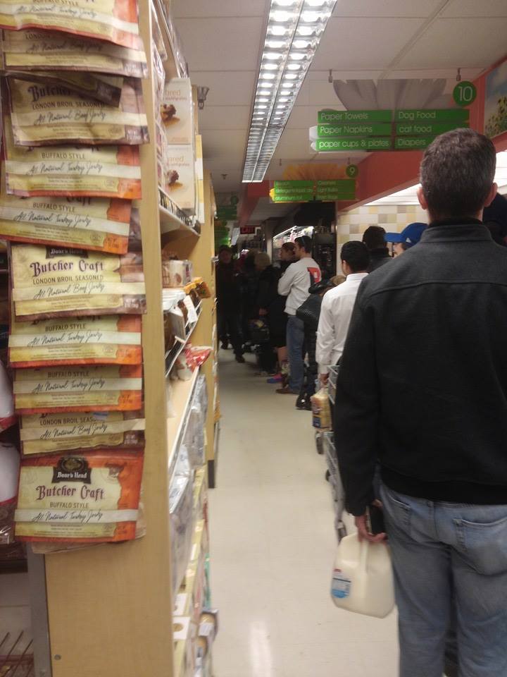Shoppers tweeted photos from checkout lines at stores throughout the Northeast using the hashtags #blizzardof2015 and #Snowmageddon2015: