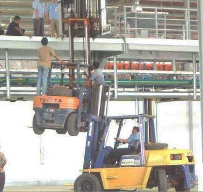 "The boss said to get this here work table to the top floor, pronto!"