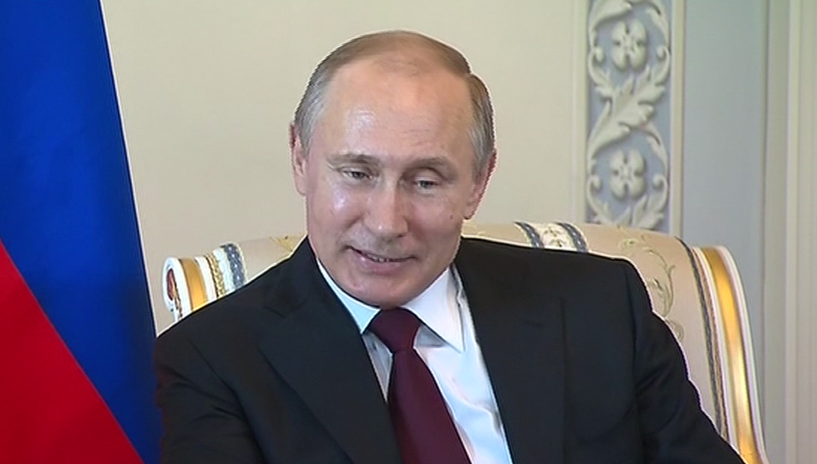 The Russian TV news channel Rossiya 24 also showed some brief footage of Mr Putin at the meeting, without sound.