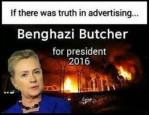 Must NEVER be president if for NO other reason than Benghazi. Benghazi...where four brave Americans died while Hillary looked away...where she never responded to their pleas for help...where she helped Obama concoct a cover-up story so ludicrous in nature that if it wasn't so pathetically sad it would be borderline funny...and where her oh so infamous words What difference does it make will forever come back to haunt her...and rightfully so even though the media continues to ignore the callousness, coldness, and sheer depravity of those five most sinister of words.