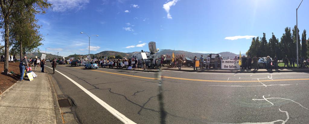 Larry Brown @LarryB_in_OK Over 8,000 protesters are lining the streets in #Roseburg to oppose #Obama showing up there today. #ObamaGoHome