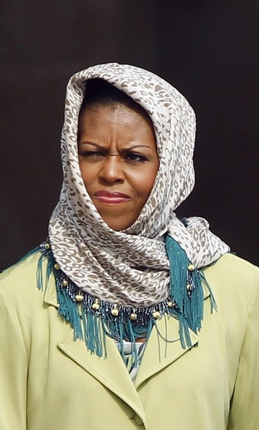 But but I thought the Muslims werent our friends and were trying to kill us? Wouldn’t the wife of a U.S. president going to a Muslim country be a huge security risk since she could be captured and woud be a great prize for them. Yes. If the Obamas were Christian but they’re not and everyone knows it. My guess is she’s probably home shopping for a place to live once the worlwide caliphate is declared and they’re out of office.
