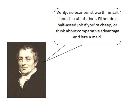 Duh. The tall guy picks the apples; the short guy harvests the strawberries. Easy call. Thats comparative advantage the rabbi is vertically-challenged so he has a comparative advantage picking things low whereas the priest is high so he may pick unforbidden fruit.