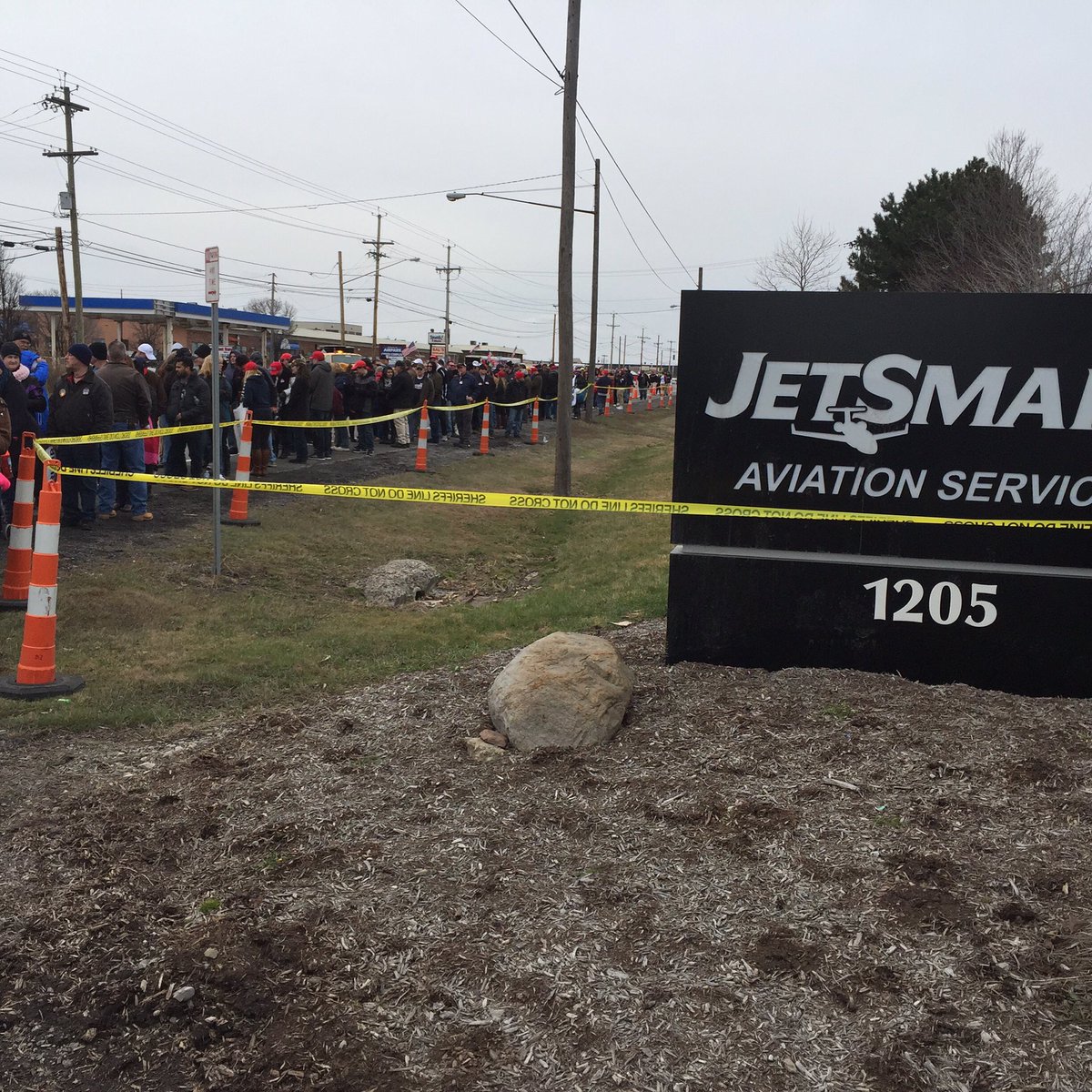 Four hours away and already a big line for Donald Trump in Rochester NY at Jetsmart Aviation hangar