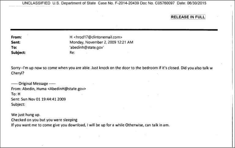 Among Hillary Clintons released emails was one between the two, with Abedin writing, Checked on you but you were sleeping.