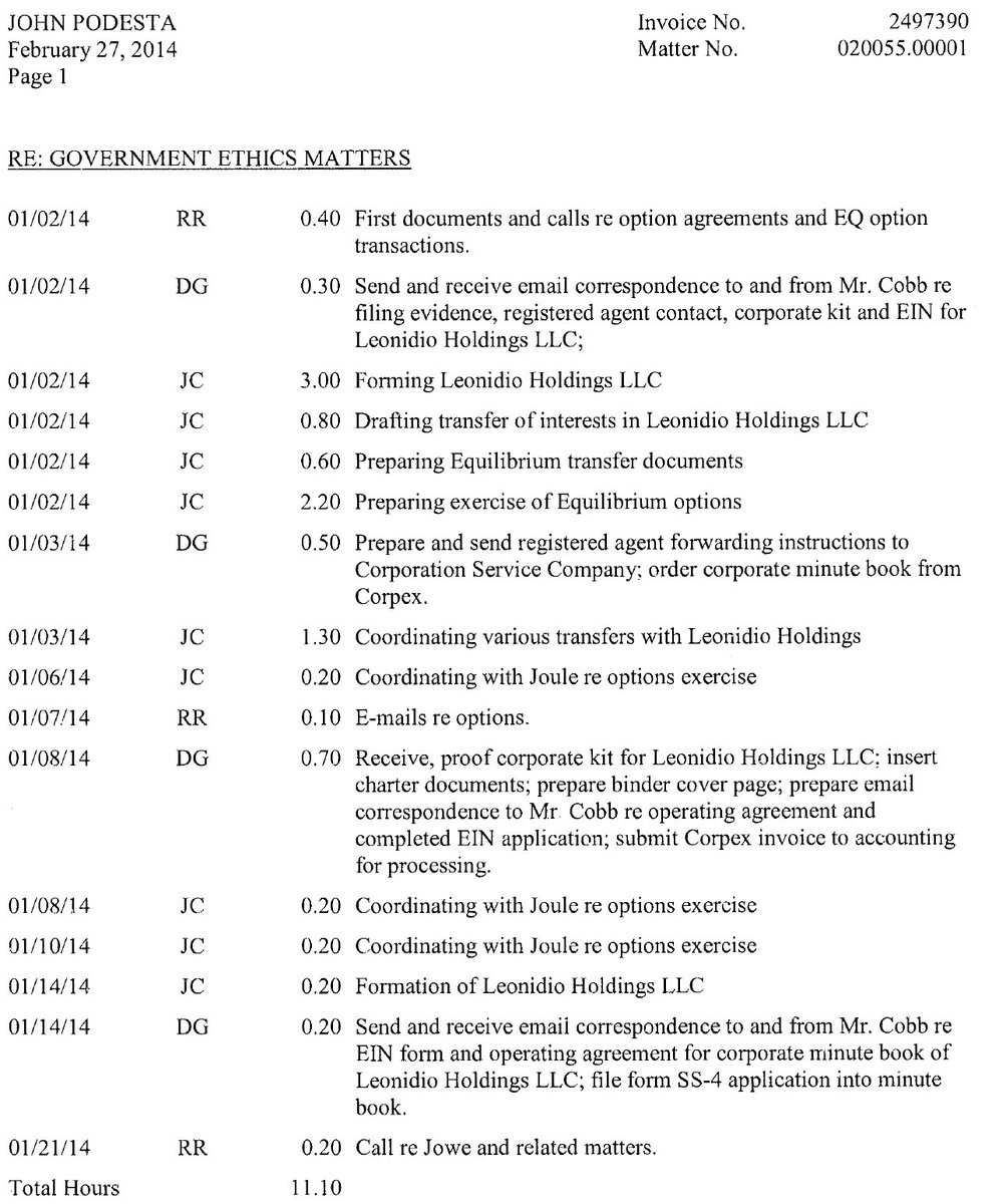 RECAP---A leaked Jan. 3, 2014 document shows that Podesta transferred more than 25,000 of 75,000 shares of Joule Technologies---a Russian-connected firm---to Leonidio Holdings LLC.