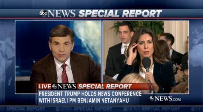 The journalists at ABC on Wednesday erupted in open hostility to Donald Trump, accusing the President of shutting down part of the First Amendment by not calling on network reporters at a press conference with Israeli Prime Minister Benjamin Netanyahu. Jon Karl, Cecilia Vega and Matt Dowd repeatedly whined about the conservative questioners who were chosen, lamenting that the preferred narrative of the liberal media wasnt highlighted. In the post-press conference coverage, Vega ranted, I want to tell you about the open hostility right here in this room. You know, I'm sitting right here kind of in the middle of a number of journalists, mainstream reporters, if you will, and there is open anger in here about the fact the President did not take any real questions about the issue of the day.