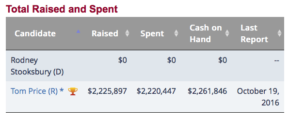 Certain people, however, are convinced that Rodney Stooksbury does not exist. This is because, even though Rodney Stooksbury was the 2016 Democratic congressional candidate in Georgias 6th District, nobody could ever actually seem to find a photograph of the guy. Or a campaign website. Or any campaign material. Or anyone who has actually met Rodney Stooksbury. News outlets tried to track down Stooksbury, to no avail. According to one investigation, when reporters went to his town house in Sandy Springs, no one answered the door. When they inquired with the neighbors, no one had heard of him. He apparently had run no campaign, and had raised no money. Stooksbury, if not a literal ghost, might as well have been one. In November, shortly before leaving to become Donald Trumps Secretary of Health and Human Services, Republican incumbent Tom Price was re-elected with approximately 62% of the vote. Rodney Stooksbury, whoever he was, came second. He received 38% of the vote.