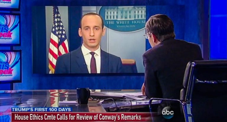 No matter how Miller answered it, it wasnt what Stephanopoulos wanted to hear. Stephanopoulos ended up mischaracterizing what Stephen Miller was saying. Stephen Miller was unflappable. He didnt lose his temper. He smiled. It appeared that Miller knew he was talking with somebody who didnt know what he was talking about and remained composed and polite as opposed to those dealing with him such as Jim Acosta, Glenn Thrush yesterday.