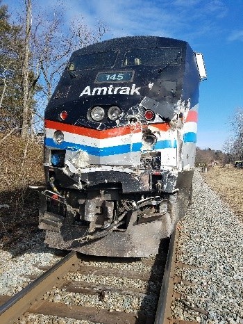 As a result of the crash, one passenger in the refuse truck died. The other truck passenger sustained serious injuries, and the driver of the truck sustained minor injuries. Three Amtrak crewmembers and three train passengers sustained minor injuries. National Transportation Safety Board (NTSB) investigators, along with personnel from the Albemarle County Police Department and the Federal Bureau of Investigation, documented the crash scene and the physical characteristics of the crossing, the train, and the refuse truck. The track and operational characteristics of the crossing signals were also examined and documented. NTSB investigators continue to examine issues related to the highwayrailroad grade crossing. Investigators are also coordinating additional passenger and witness interviews and continue to gather information related to motor carrier operations, rail operations, and driver and train crew experience. All aspects of the crash remain under investigation while the NTSB determines the probable cause, with the intent of issuing safety recommendations to prevent similar crashes. The information in this report is preliminary and will be supplemented or corrected during the course of the investigation.