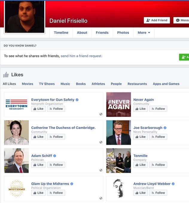 The libtard suspected of mailing the white powder to Donald Trump Jr. and several politicians was a gun grabbing Morning Joe fan. His Facebook profile is still public and viewable.