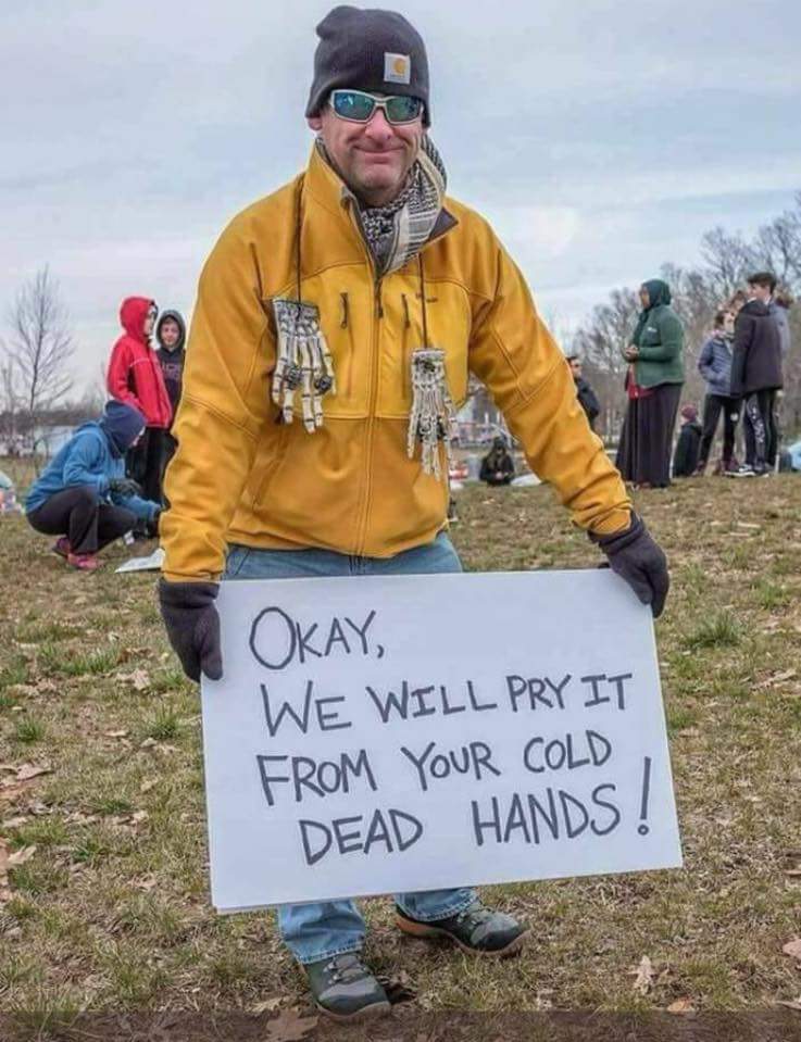 We’ll see if he drops his sign when someone shoves the barrel of an AR-15 up his a$$ and starts firing.