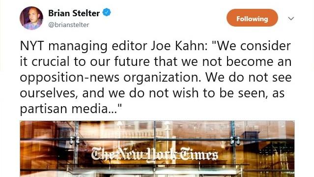 Then Vanity Fair published a story on internal squabbling between the left and the radical left inside The New York Times, which included this line from managing editor Joe Kahn. Remarkably, it's even funnier than Marty Baron's. CNN's Brian Stelter tweeted it out, like it wasn't preposterous: