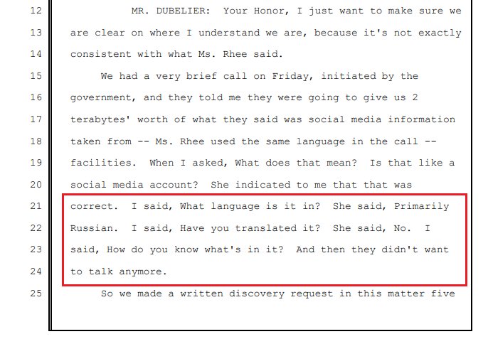 Lol, that’s complete nonsense if they are claiming that their ‘evidence’ exists in two terabytes of information written primarily in Russian, and it hasn’t been translated. Hopefully this will result in some serious legal jeopardy for Mueller and his gang of henchmen.
