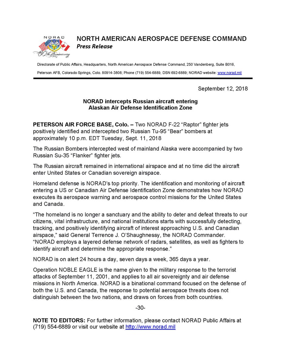 The Russian aircraft two Tu-95 bombers and two Su-35 fighter jets did not cross into U.S. or Canadian airspace, the incident marks the second time in September that Russian bombers have approached Alaska.