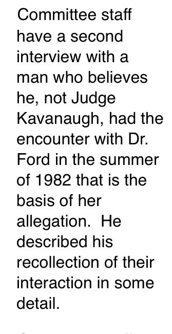 Judiciary is also talking to someone who thinks he forced himself on Dr. Ford not Judge Kavanaugh