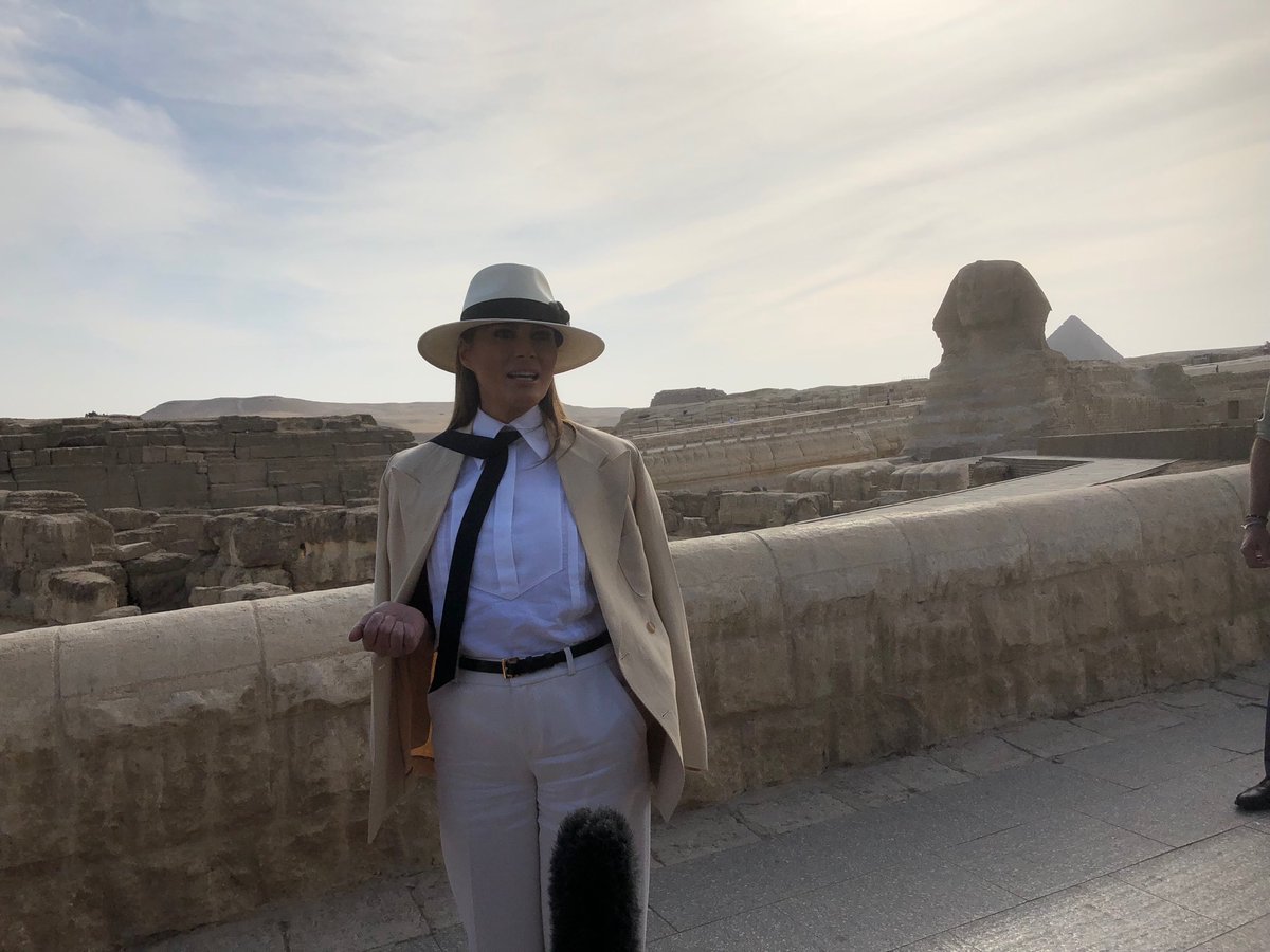 FLOTUS walks to her car after meeting with Egyptian President Abdel Fattah al-SisiAbdel and Egyptian First Lady Entissar Mohameed Amer at the Presidential Palace in Cairo, Egypt