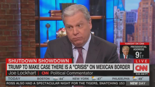 On this morning's New Day, Lockhart, a CNN political commentator and former spokesman for President Clinton, recommended that the networks not provide live coverage this evening of President Trump's Oval Office address about the situation at the border. Instead, Lockhart said Trump should give the networks the text in advance, "and let us decide in advance what's true."