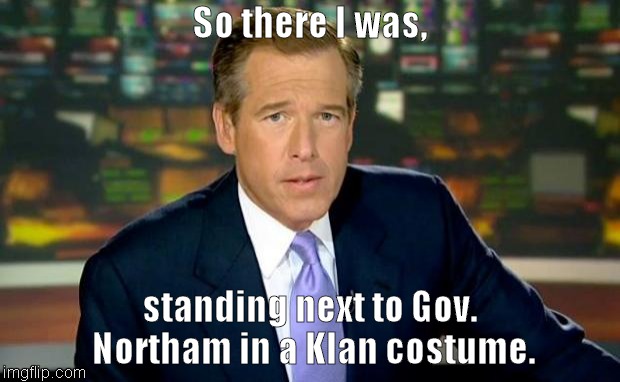 I think he is the one in the KKK outfit, which of course is merely throw back Thursday Dem garb. What’s the problem. If Dem’s did a little history reading, they would learn that their team was responsible for most of the lynching, raping, bonfires etc. of that era.