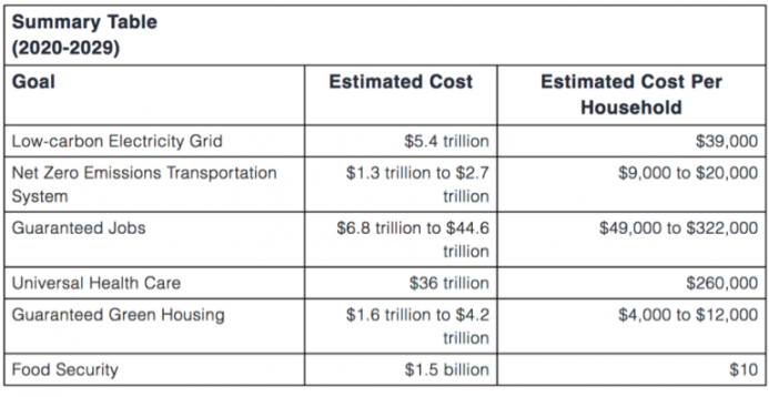 Even so, more sober-minded policymakers, as well as the general public, should be aware of just how ludicrously expensive the GND really is. A recent analysis by the American Action Forum puts the initial 10-year cost at a staggering $93 trillion. Although the reader might understandably assume that this is an inflated figure designed to discredit the GND, it actually rests on a few conservative assumptions. The figure of $93 trillion is admittedly absurd, but thats only because the planks of the GND are absurdly expensive. The American Action Forum estimate is entirely fair.