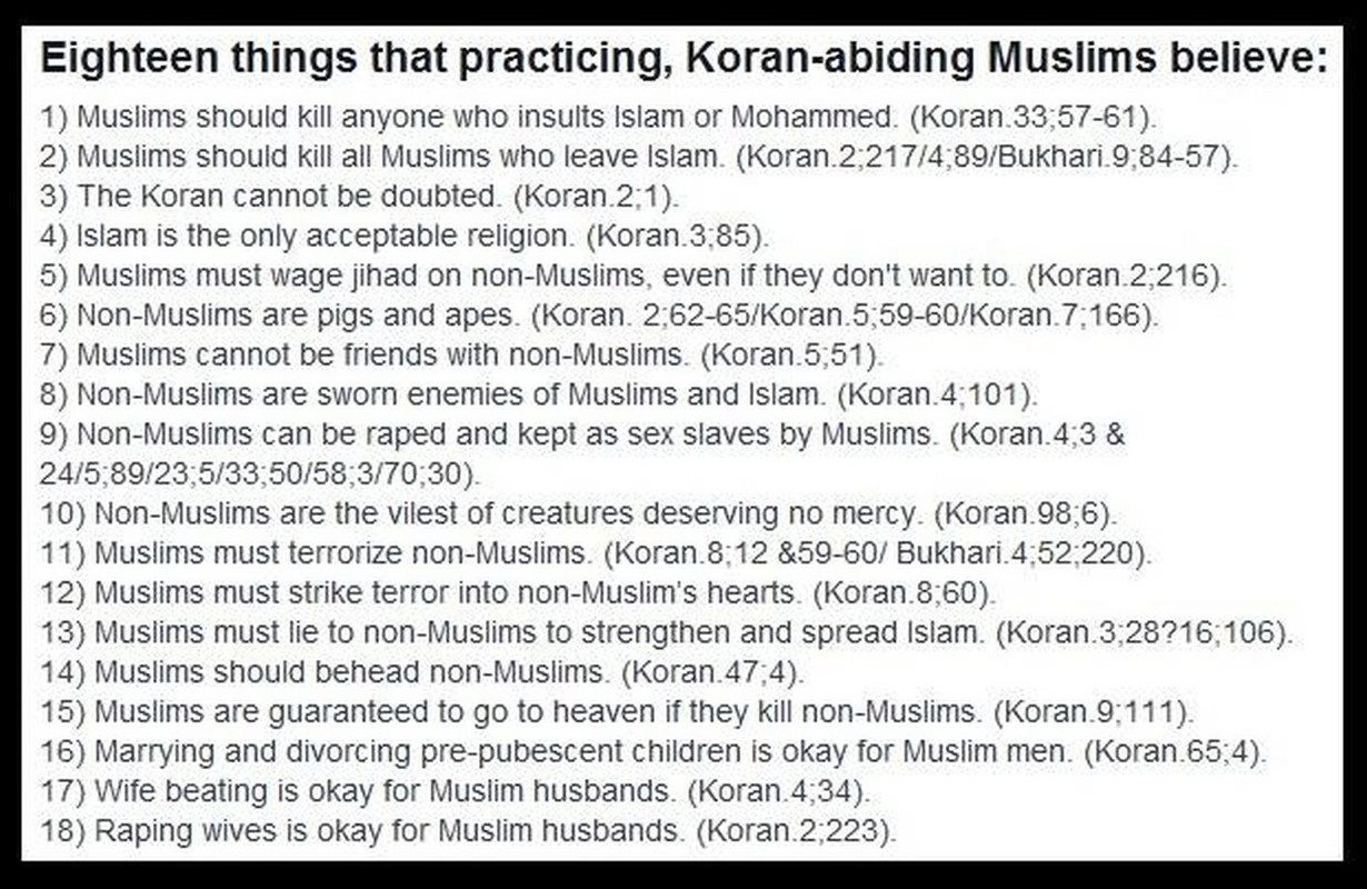 Muslims cannot live in a civilized society because some of them will practice their religion as Mohamed intended.