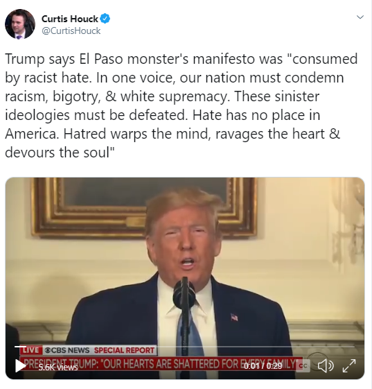 WANG: He directly mentioned the shooter in El Paso who denounced what he called a Hispanic invasion at the border. Some of that language mirrors how President Trump talked about the immigration crisis at the border. That's why critics were so quick to draw the link between what happened in El Paso and how the President has been talking about these migrants before. But in this case he brought up that shooter. He said, These sinister ideologies must be defeated and he really did set a different tone than he did in the past when it comes to condemning this hate.