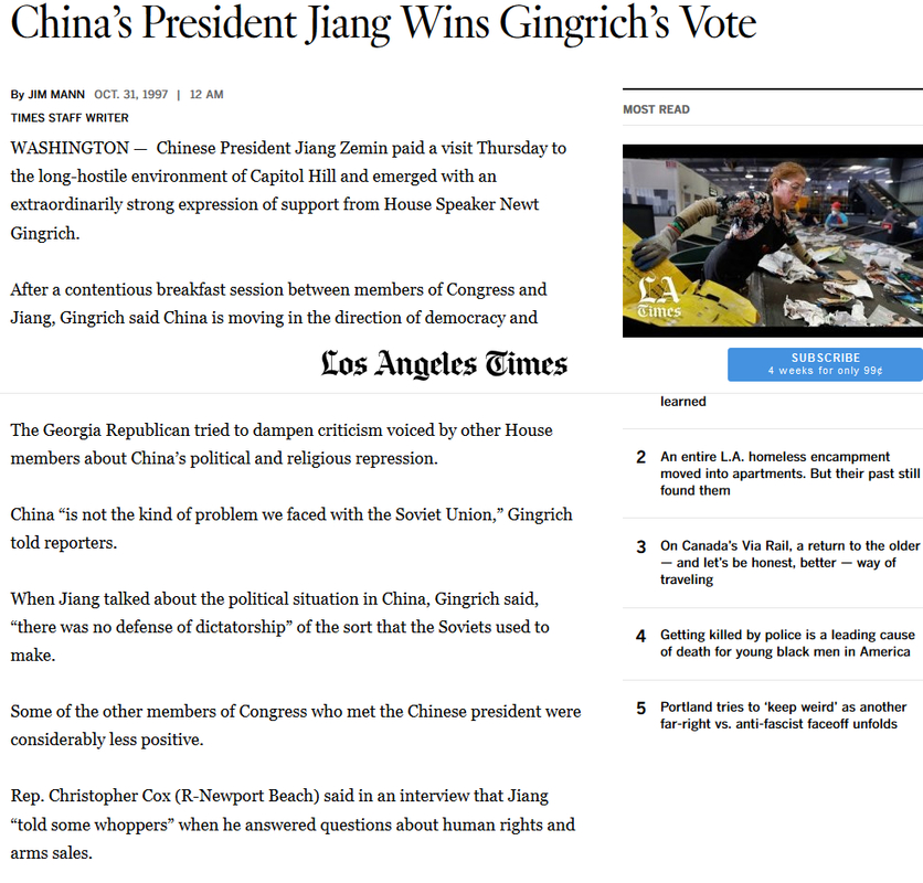 And as long as youre raising this issue, perhaps you can explain why China and its totalitarian regime enjoyed such favorable trade status with the U.S. during your entire tenure as the Speaker of the House of Representatives.